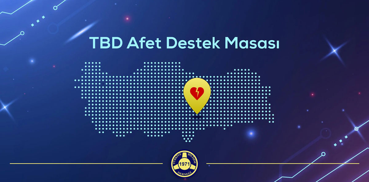 Türkiye Bilişim Derneği olarak tüm şubelerimizle birlikte, 6 Şubat 2023 tarihinde 7,7 ve 7,4 şiddetinde meydana gelen ve büyük kayıplara neden olan deprem felaketinin yaralarını sarmak amacıyla çalışmalarımızı yürütüyoruz. Bu kapsamda tarafımıza ilk aşamada gelen yardım taleplerini mevzuat gereği AFAD’ a yönlendirmekteyiz. TBD bünyesinde; gerek acil, gerekse depremin meydana getirdiği hasar ve yaraları sarmak amacıyla uzun vadede yapılacak yardımları yönlendirmek ve deprem destek kampanyası düzenleme çalışmaları yapmak üzere “TBD Afet Destek Masası” kurulmuştur.