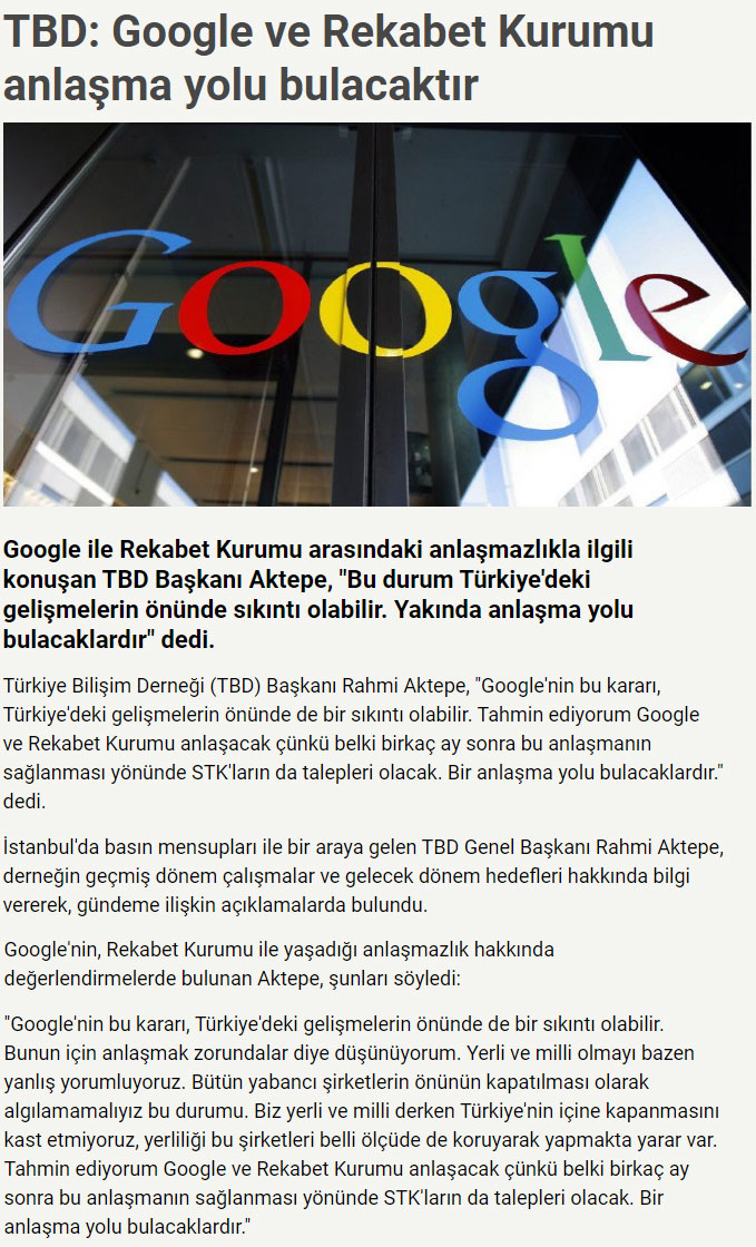 TBD: Google ve Rekabet Kurumu Anlaşma Yolu Bulacaktır – KARAR