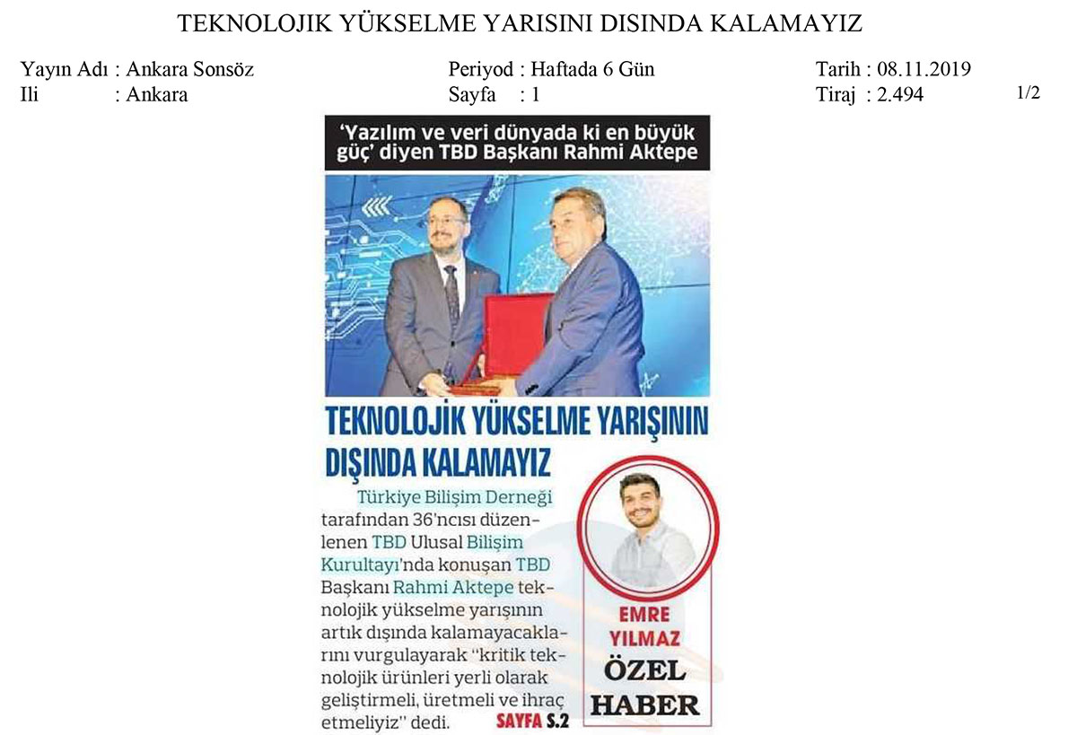 • Teknolojik Yükselme Yarışının Dışında Kalamayız – ANKARA SONSÖZ