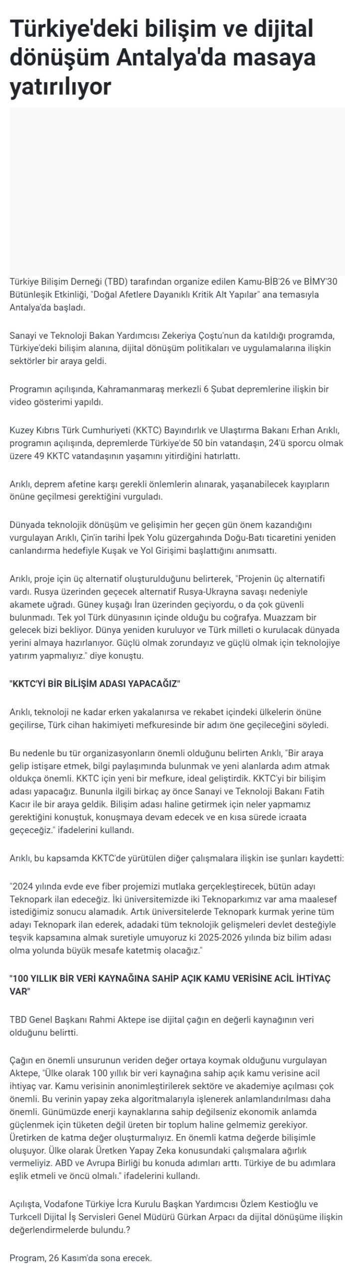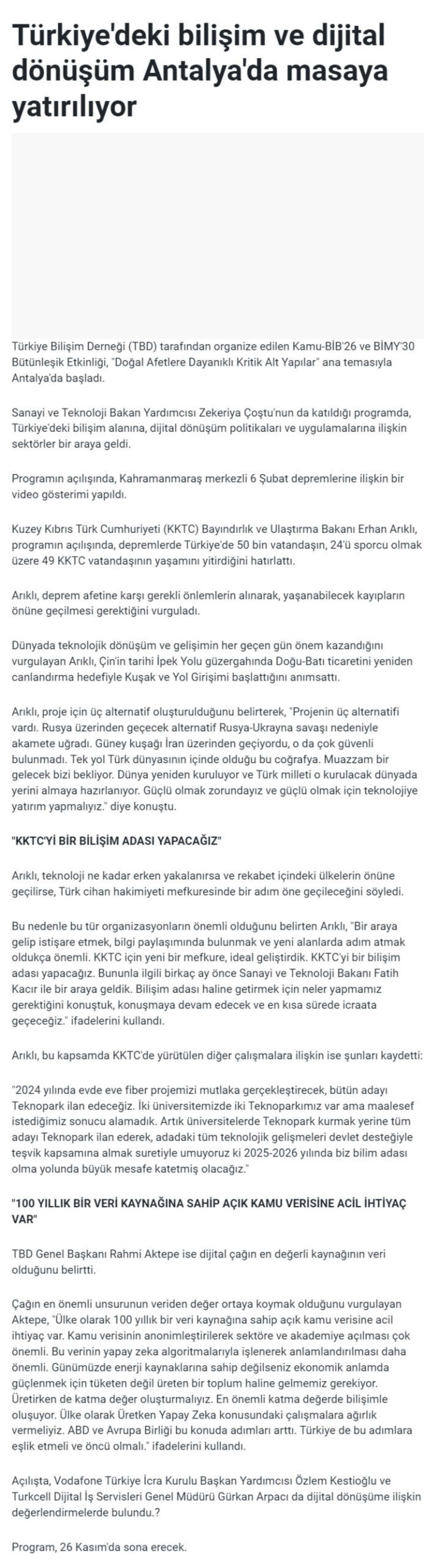 Önceki Türkiye'deki Bilişim ve Dijital Dönüşüm Antalya'da Masaya Yatırılıyor - KIBRIS TÜRK