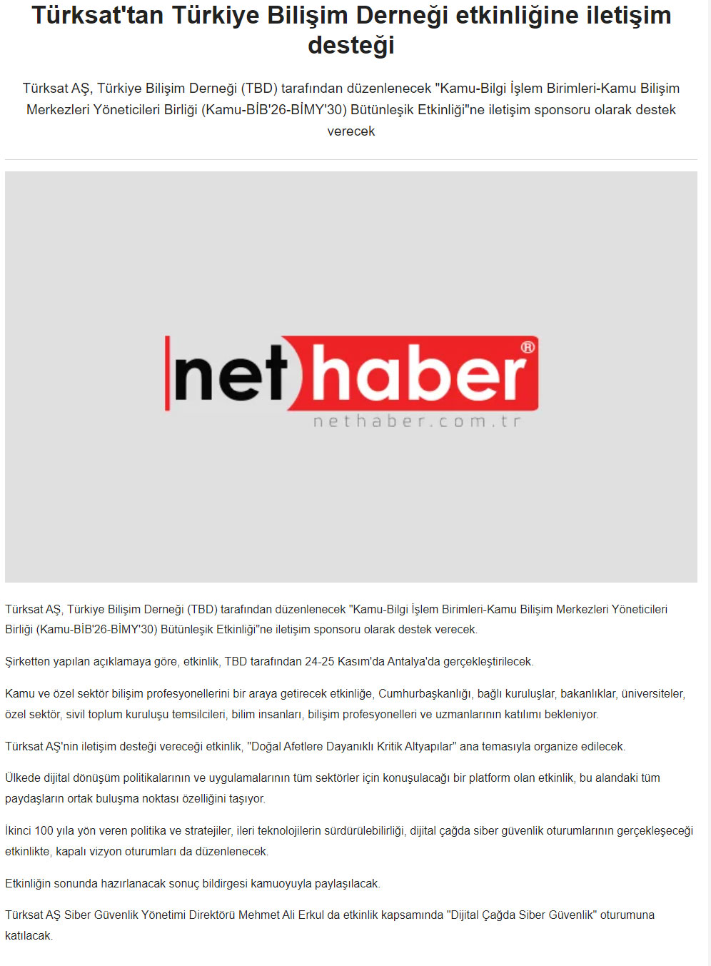 Türksat’tan Türkiye Bilişim Derneği Etkinliğine İletişim Desteği – NETHABER