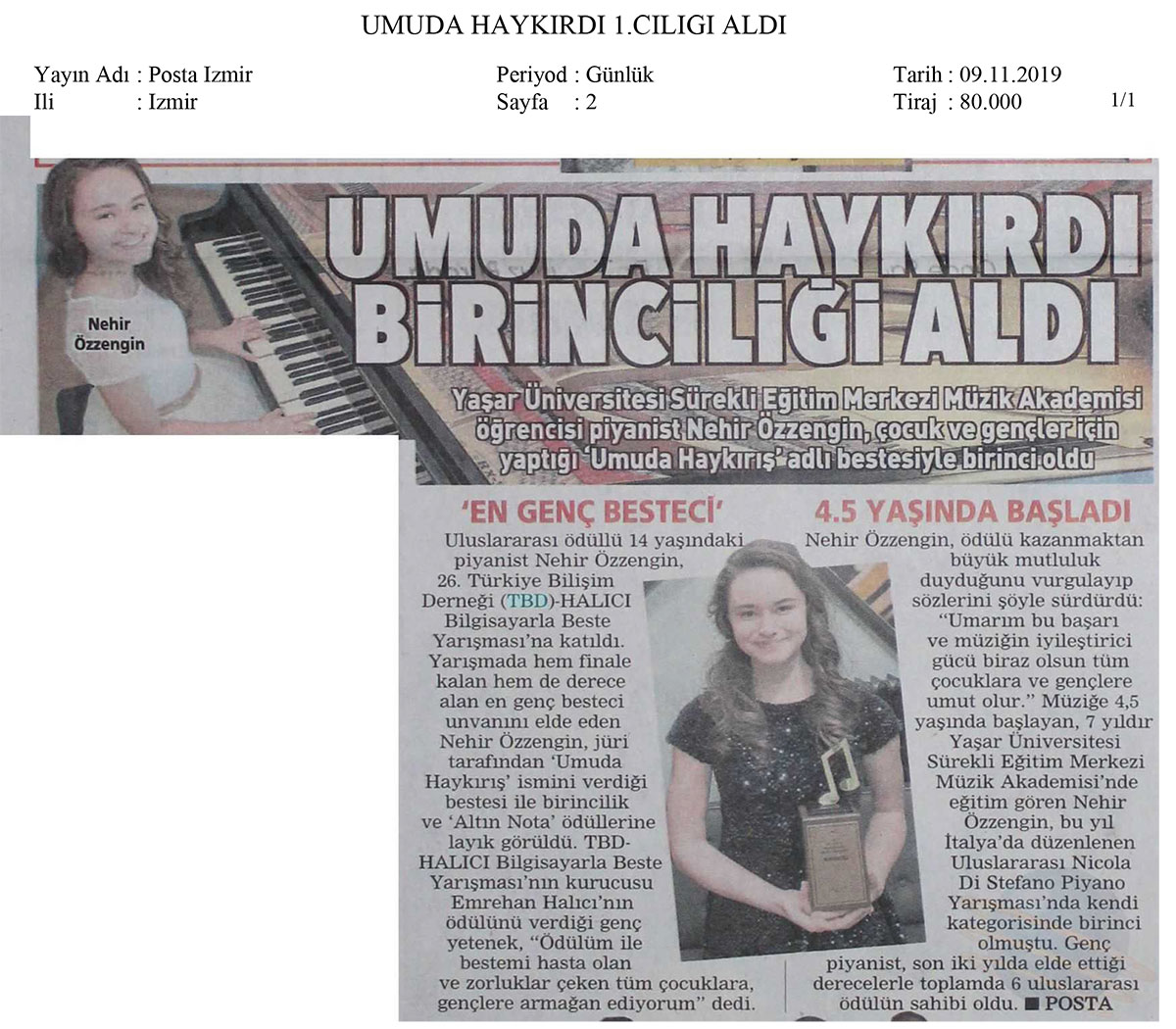 • Umuda Haykırdı Birinciliği Aldı – POSTA İZMİR