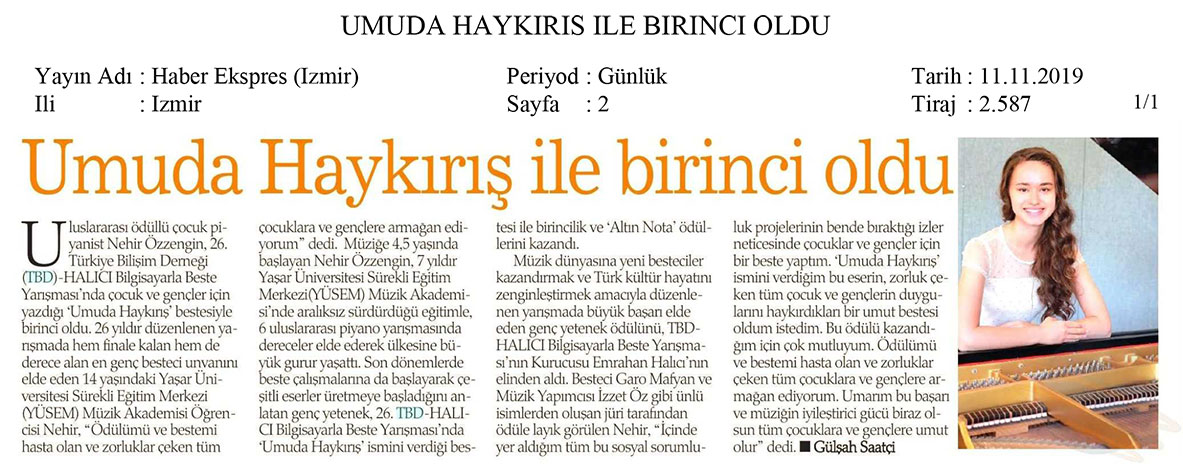 Umuda Haykırış ile Birinci Oldu – HABER EKSPRES (İZMİR)