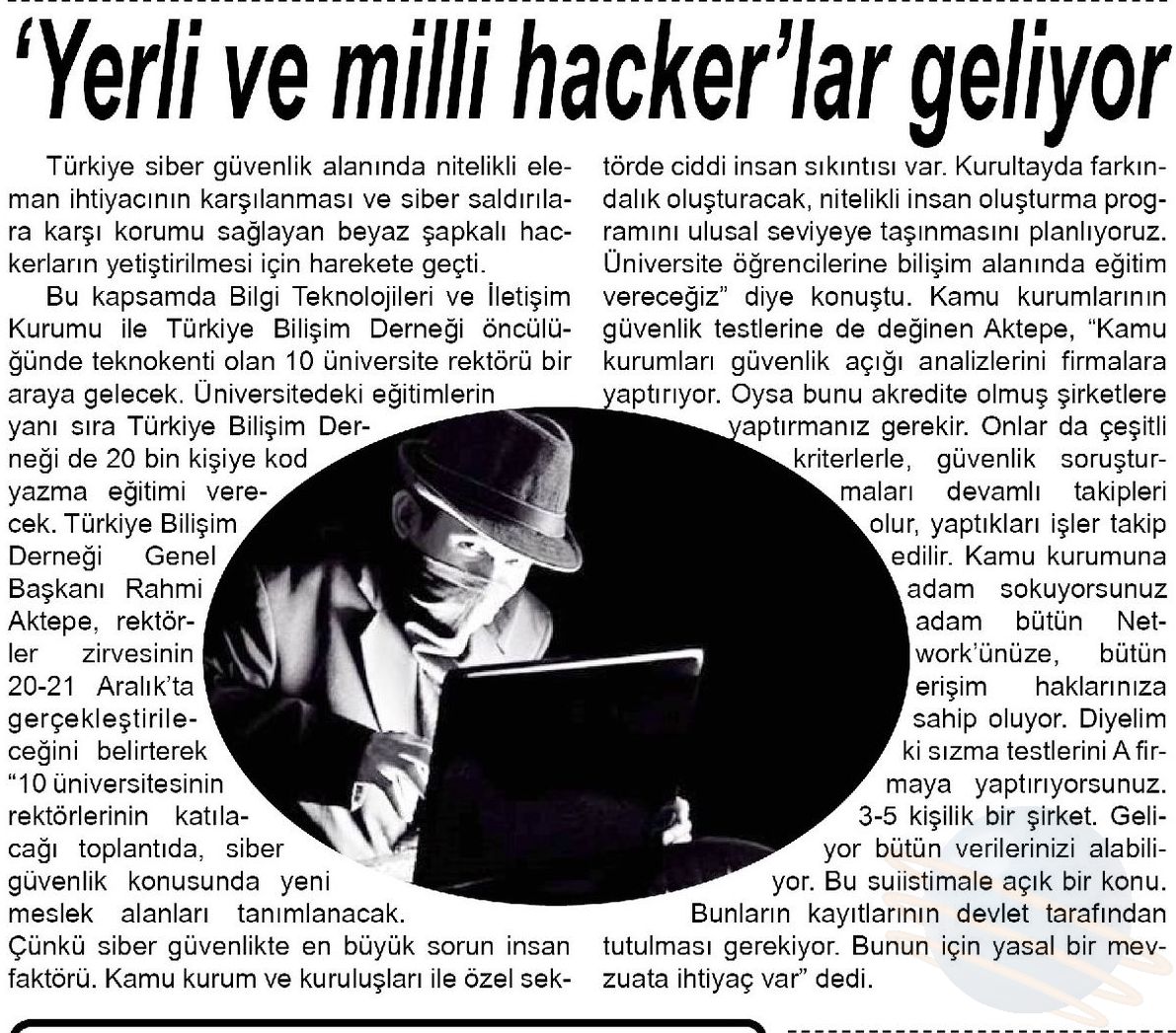 • Yerli ve Milli Hacker’lar Geliyor – Doğruyol Gazetesi