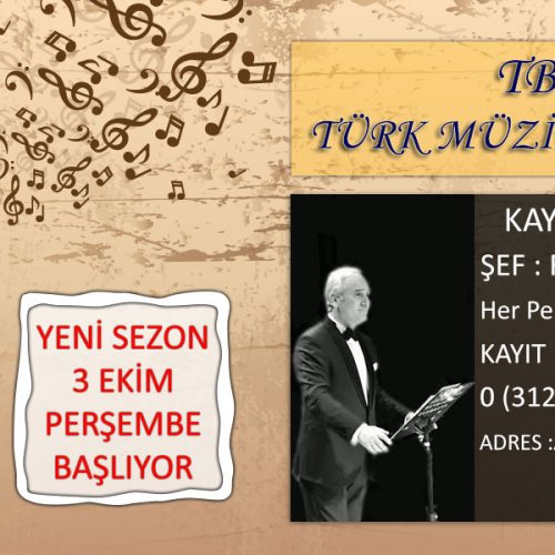 TBD Türk Müziği Koro kayıtları başladı. Yeni sezon 3 Ekim 2019 tarihinde başlıyor. Çalışmalar her perşembe 18:30 – 20:30 arasında Kızılay Selcan İşhanında olacaktır. Kayıt olmak için hemen bizimle iletişime