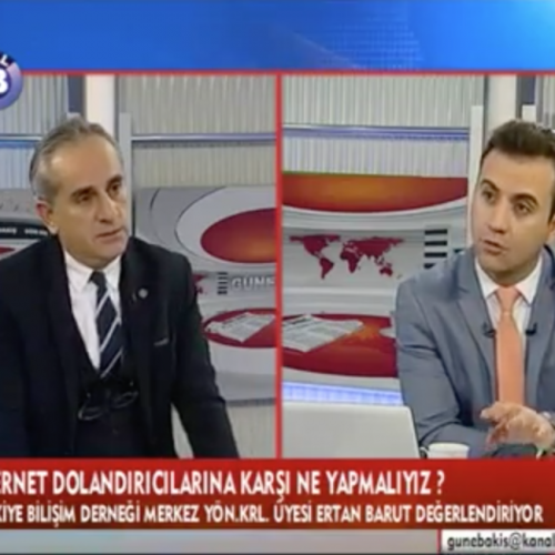 TBD Merkez Yönetim Kurulu Üyesi ERTAN BARUT, 6 Şubat 2018 tarihinde KANAL B “GÜNE BAKIŞ PROGRAMI” ‘na katıldı. Nebi Özdemir’in sunduğu programda İnternet Dolandırıcılığı yoluyla İşlenen Bilişim Suçları ve Cezaları,