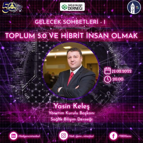 Türkiye Bilişim Derneği İstanbul Şubesi Genç Çalışma Grubumuz tarafından düzenlenen Gelecek Sohbetleri serisinin birinci programı; 12 Şubat 2022 Saat 20:00‘ de Sağlık Bilişim Derneği Yönetim Kurulu Başkanı Yasin Keleş’in katılımıyla