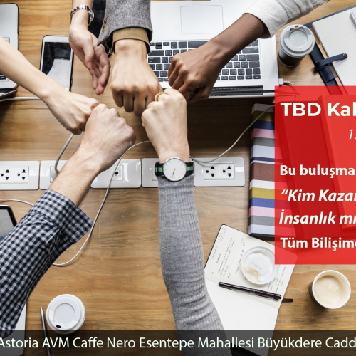 13 Kasım Çarşamba günü 18:00-22:00 saatleri arasında Astoria AVM Caffe Nero` da “TBD İstanbul Kahve Buluşması” için bir araya geliyoruz. Bu ay ki buluşmamızda konumuz: “Kim Kazanacak: İnsanlık mı, Yapay