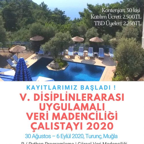 TBD İstanbul Şubesi V. Disiplinlerarası Uygulamalı Veri Madenciliği Çalıştayı’na Davetlisiniz! 30 Ağustos – 6 Eylül 2020, Turunç, Muğla https://verimadenciligi.tovak.org/ Günümüzde yalnızca bilginin toplanması, depolanması ve klasik sorgu yöntemleri ile bu