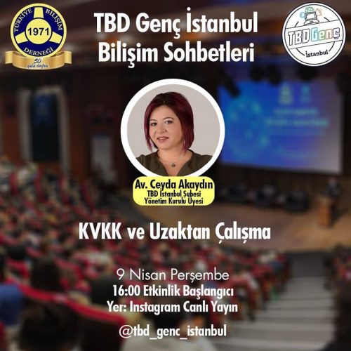 TBD Genç İstanbul olarak Bilişim Sohbetlerimize Av. Ceyda Akaydın ile “KVKK ve Uzaktan Çalışma” konusuyla devam ediyoruz. Siz de bu sohbete katılmak isterseniz 9 Nisan Perşembe günü saat 16:00’da @tbd_genc_istanbul