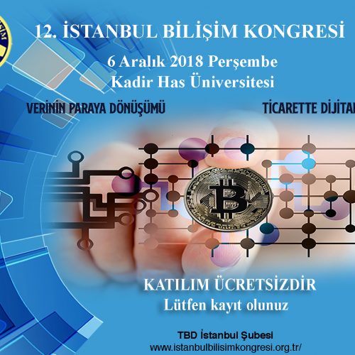 “Verinin Paraya Dönüşümü, Ticarette Dijital Çağ” 6 Aralık 2018 Türkiye Bilişim Derneği olarak Kadir Has Üniversitesi ile birlikte düzenlediğimiz 12. İstanbul Bilişim Kongresi “Verinin Paraya Dönüşümü” Ticaretin Dijital Çağı teması ile 6 Aralık