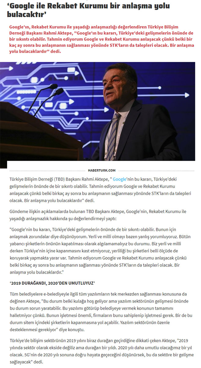 Google ile Rekabet Kurumu Anlaşma Yolu Bulacaktır – HABERTÜRK