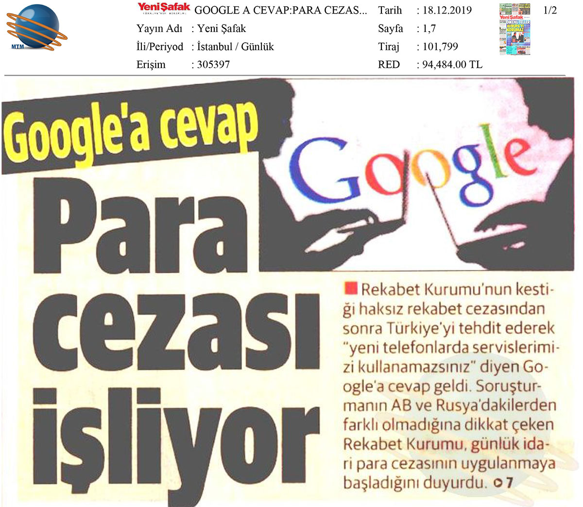 Google’a Cevap: Para Cezası İşliyor – YENİ ŞAFAK