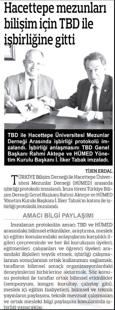 • Hacettepe Mezunları Bilişim İçin TBD ile İşbirliğine Gitti – ANADOLU
