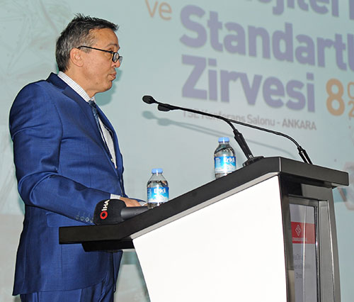 TSE Başkanı Prof. Dr. Adem Şahin ise, tüm dünyada dijital dönüşümün ülkemiz için kritik öneme sahip olduğunun altını çizdi. Standartların, dijital dönüşüm için çok önemli bir görev üstlendiğini söyleyen Şahin, “Standartlar, dijital dönüşüm trendini yakalamak isteyen paydaşlarına kapıyı aralamakta ve dönüşümü paydaşları için daha kolay ve anlaşılır bir hale getirmektedir” dedi. Şahin, şöyle devam etti: