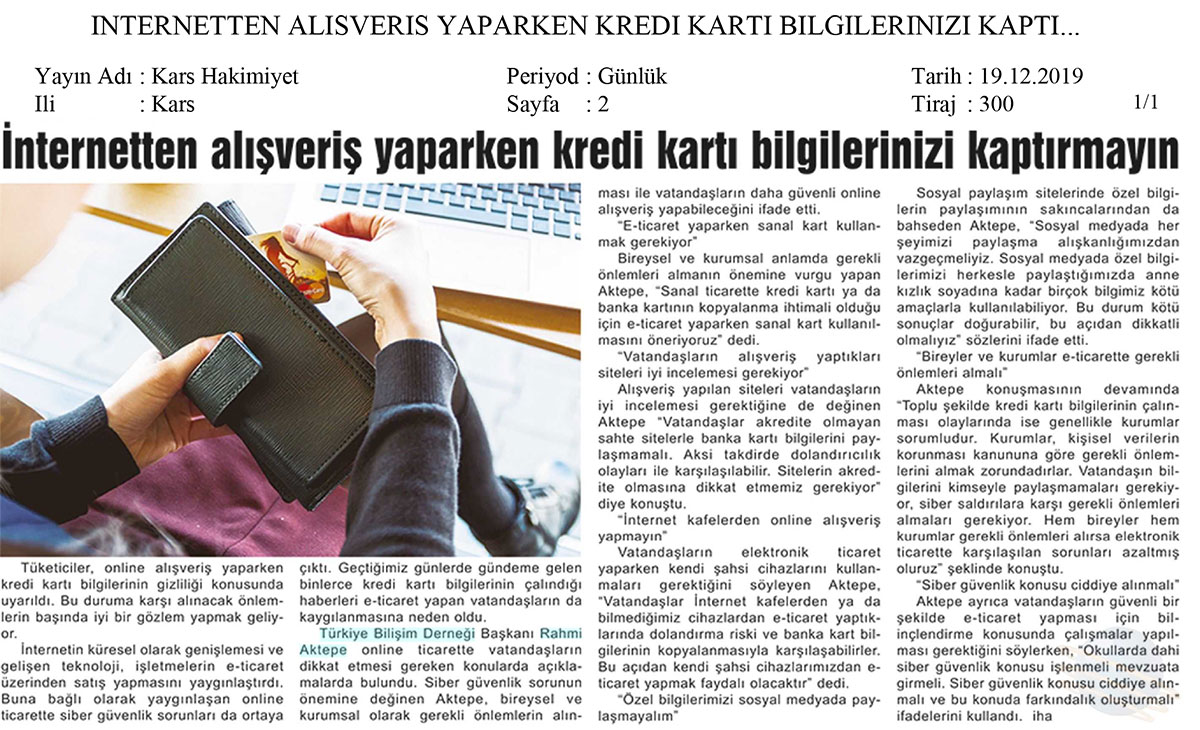 • İnternetten Alışveriş Yaparken Kredi Kartı Bilgilerinizi Kaptırmayın – KARS HAKİMİYET