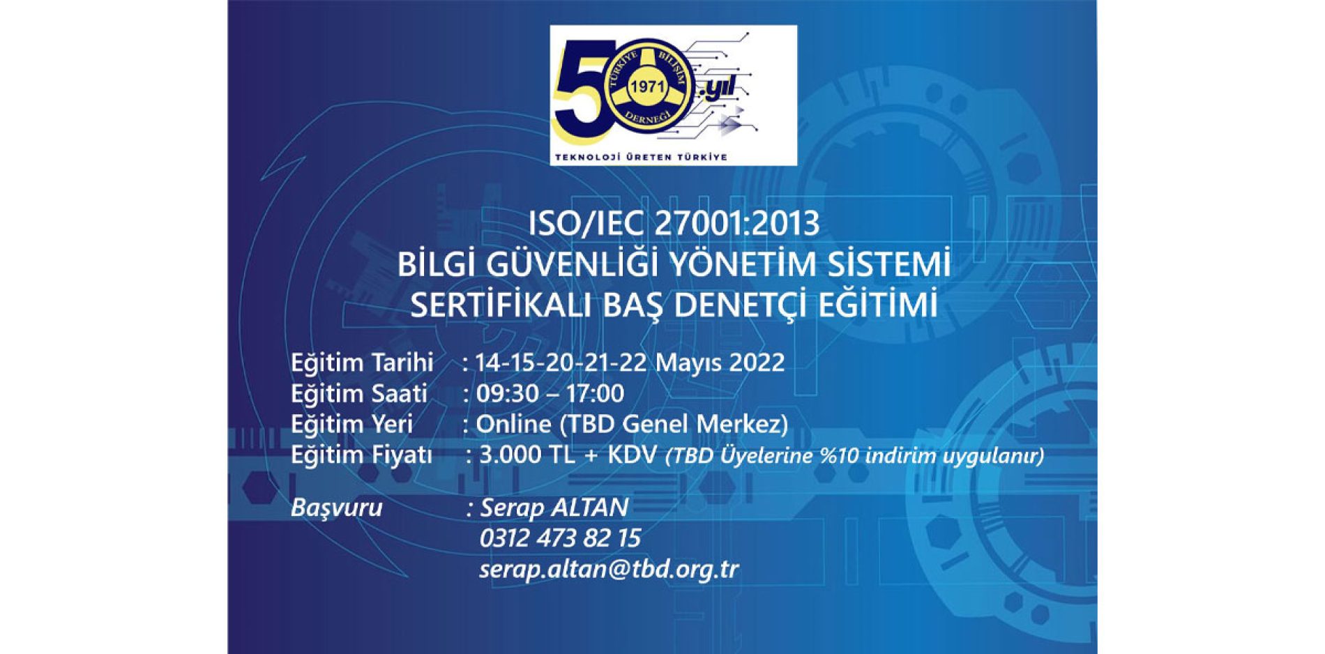ISO/IEC 27001:2013 Bilgi Güvenliği Yönetim Sistemi Baş Denetçi Eğitimi 14-15-20-21-22 Mayıs 2022