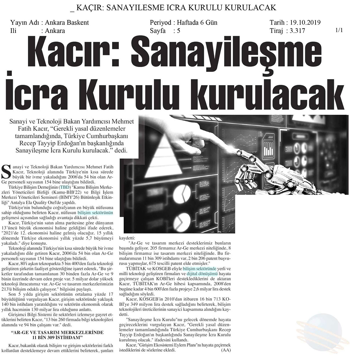 • KACIR: Sanayileşme İcra Kurulu Kurulacak – ANKARA BAŞKENT