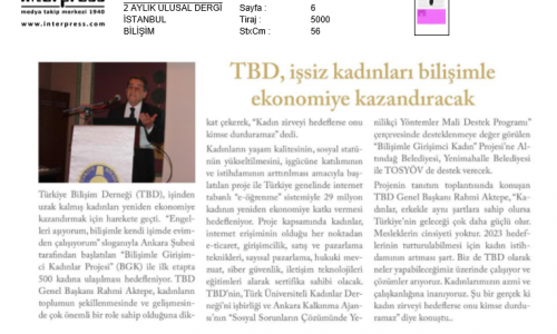 TBD Ankara Şubesi tarafından gerçekleştirilen “Bilişimle Girişimci Kadın” Projesinin basından yansımaları devam etmektedir.