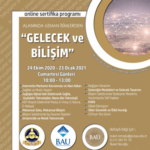 Bahçeşehir Üniversitesi ile TBD İstanbul Şubesi olarak birlikte düzenlediğimiz, Bilişim sektörünün Duayen Profesyonellerinin eğitmen olarak yer aldığı, “Bilişim ve Gelecek Sertifika Programı” başlıyor. Katılımcılara bilişim sektörünün en önemli trendlerinin iş