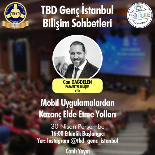 TBD Genç İstanbul Bilişim Sohbetlerimize Can Dağdelen ile “Mobil Uygulamalardan Kazanç Elde Etme Yolları” konusuyla devam ediyoruz. Siz de bu sohbetimize katılmak isterseniz 30 Nisan Perşembe günü saat 16:00′ da