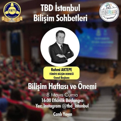 TBD İstanbul Şubesi Bilişim Sohbetlerimize Sayın Rahmi Aktepe ile “Bilişim Haftası ve Önemi” konusuyla devam ediyoruz. Bu keyifli sohbet için sizleri de 8 Mayıs Cuma günü saat 16:00′ da @tbd_istanbul