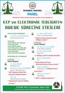4 Ocak 2014 tarihinde İstanbul Barosu ve TBD Ankara Şubesi Bilişim Hukuku Çalışma Grubu işbirliği ile KEP ve Elektronik Tebligat Paneli düzenleniyor.