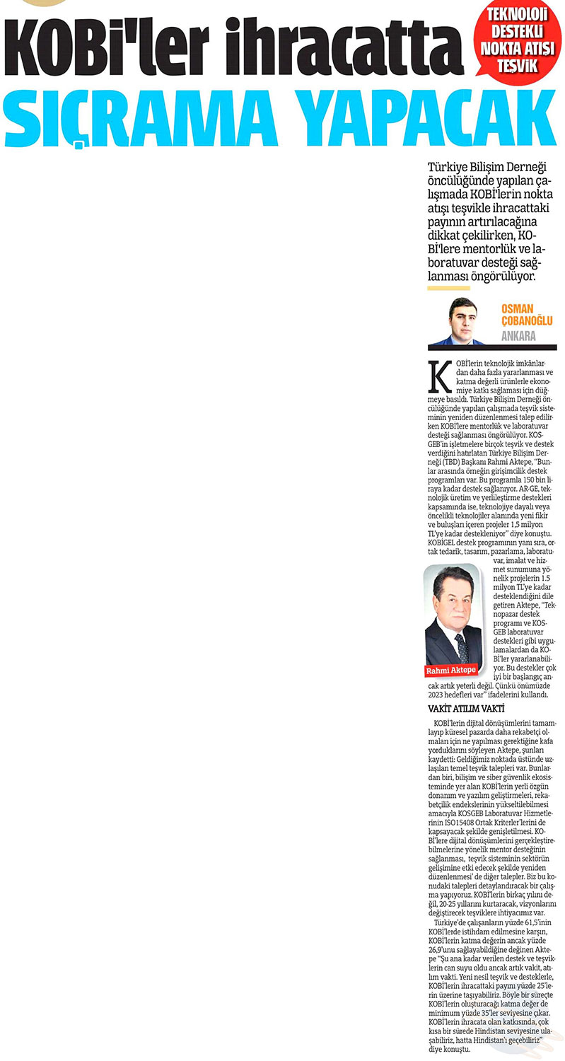 • KOBİ’ler İhracatta Sıçrama Yapacak – TÜRKİYE GAZETESİ