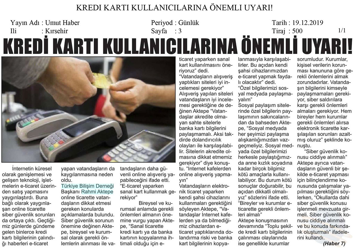 • Kredi Kartı Kullanıcılarına Önemli Uyarı – UMUT HABER