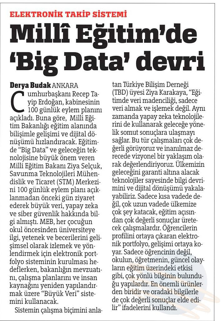 • Milli Eğitim’de ‘Big Data’ Devri – TÜRKİYE GAZETESİ