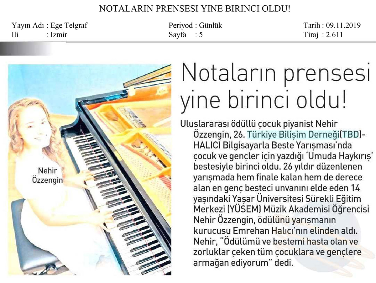 • Notaların Prensesi Yine Birinci Oldu – EGE TELGRAF