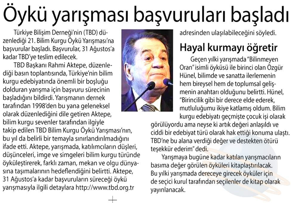 Önceki 21. TBD Bilim Kurgu Öykü Yarışması Başlıyor - TİCARİ HAYAT
