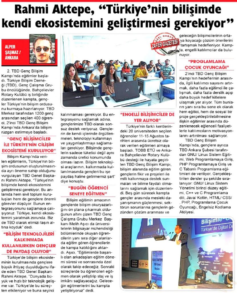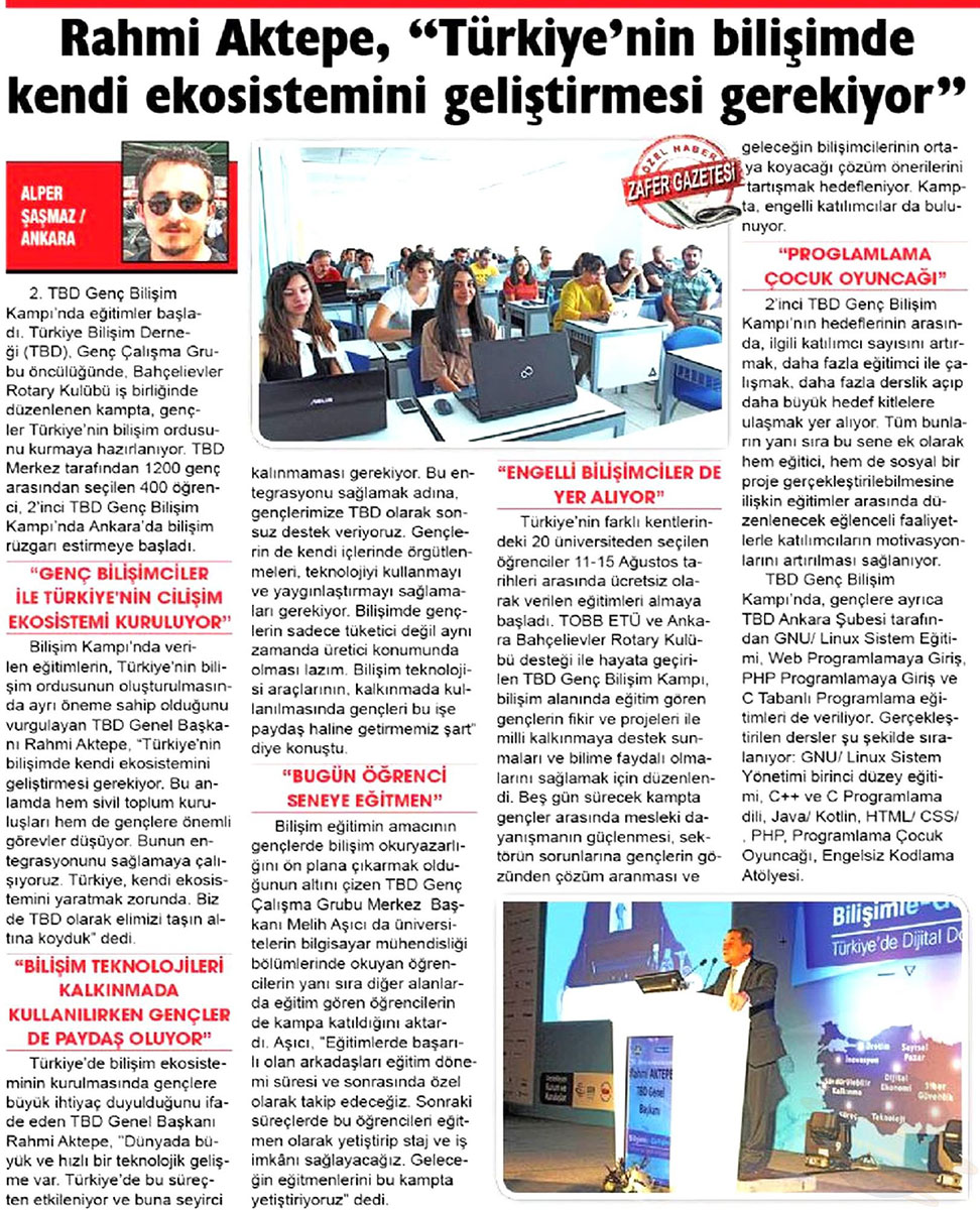 • Rahmi Aktepe, “Türkiye’nin Bilişimde Kendi Ekosistemini Geliştirmesi Gerekiyor” – ZAFER GAZETESİ