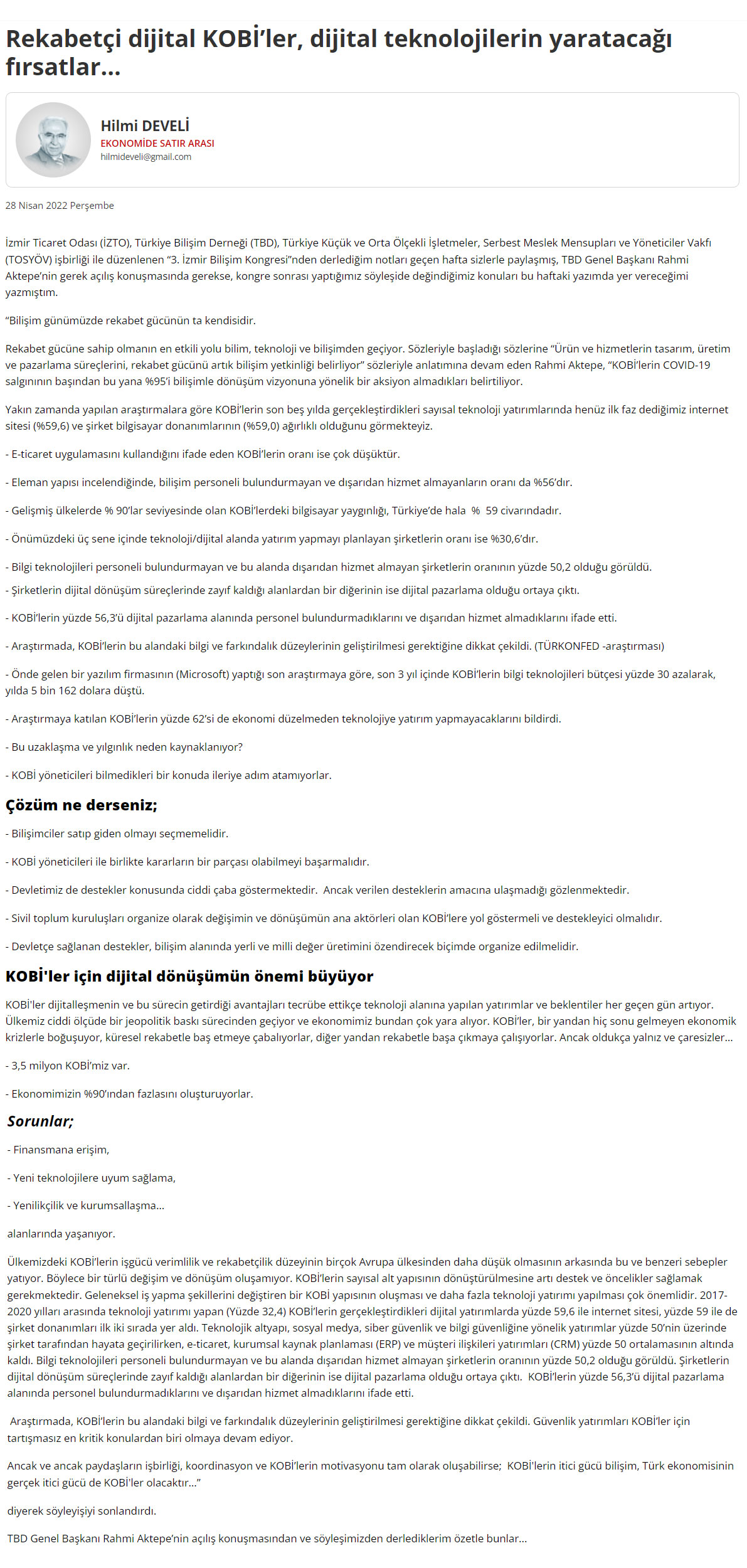 • Rekabetçi Dijital KOBİ’ler, Dijital Teknolojilerin Yaratacağı Fırsatlar… – DÜNYA