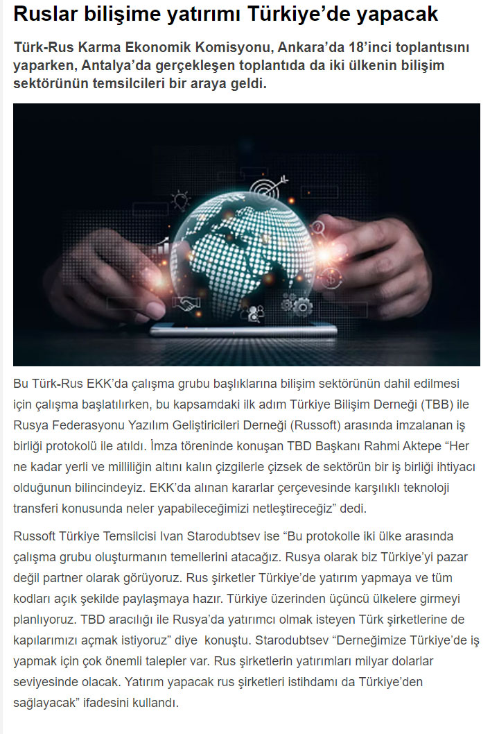 Ruslar Bilişime Yatırımı Türkiye’de Yapacak – TÜRKİYE GAZETESİ