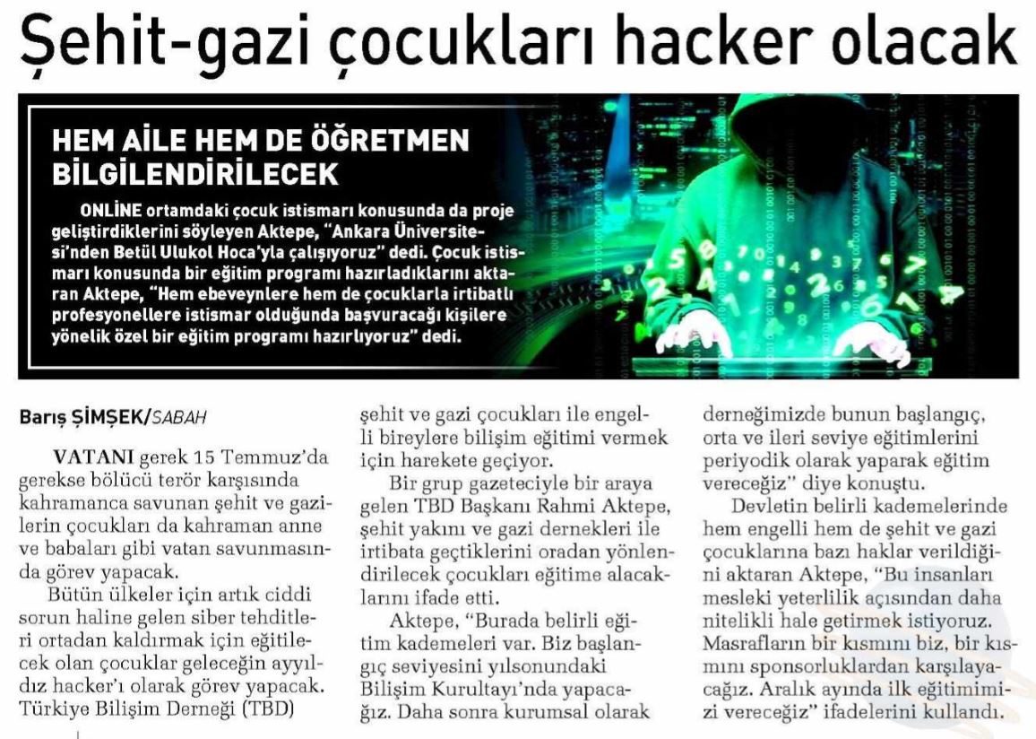 Şehit-Gazi Çocukları Hacker Olacak – SABAH GAZETESİ