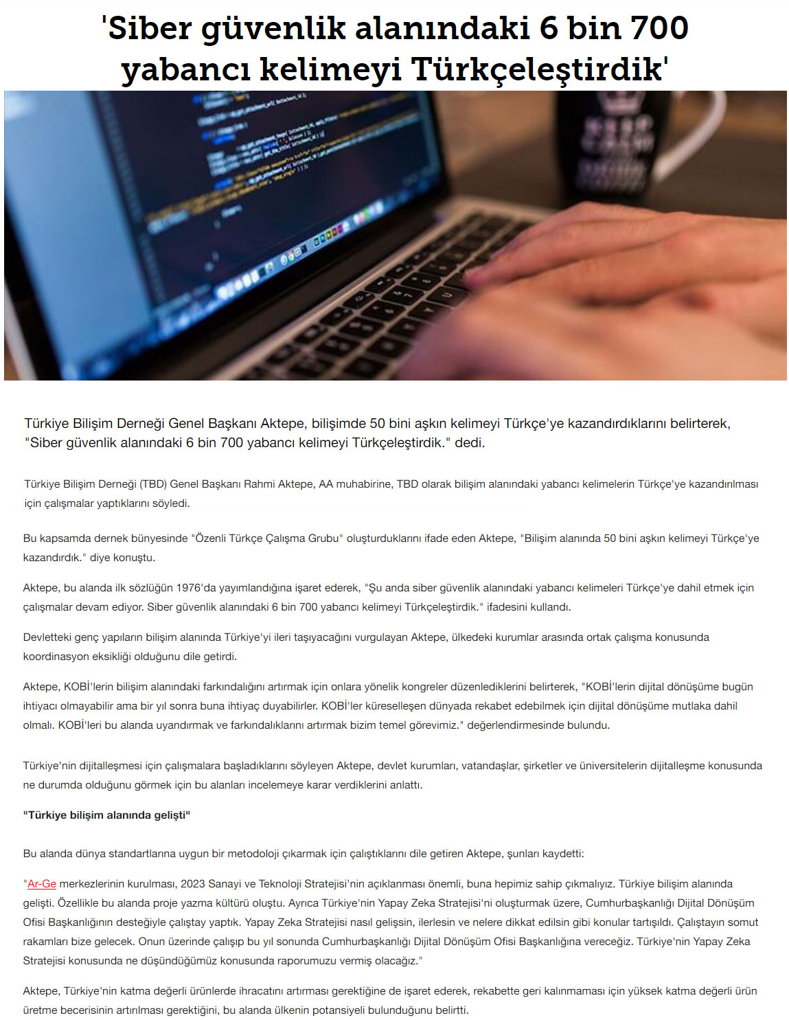 • Siber Güvenlik Alanındaki 6 bin 700 Yabancı Kelimeyi Türkçeleştirdik – HÜRRİYET