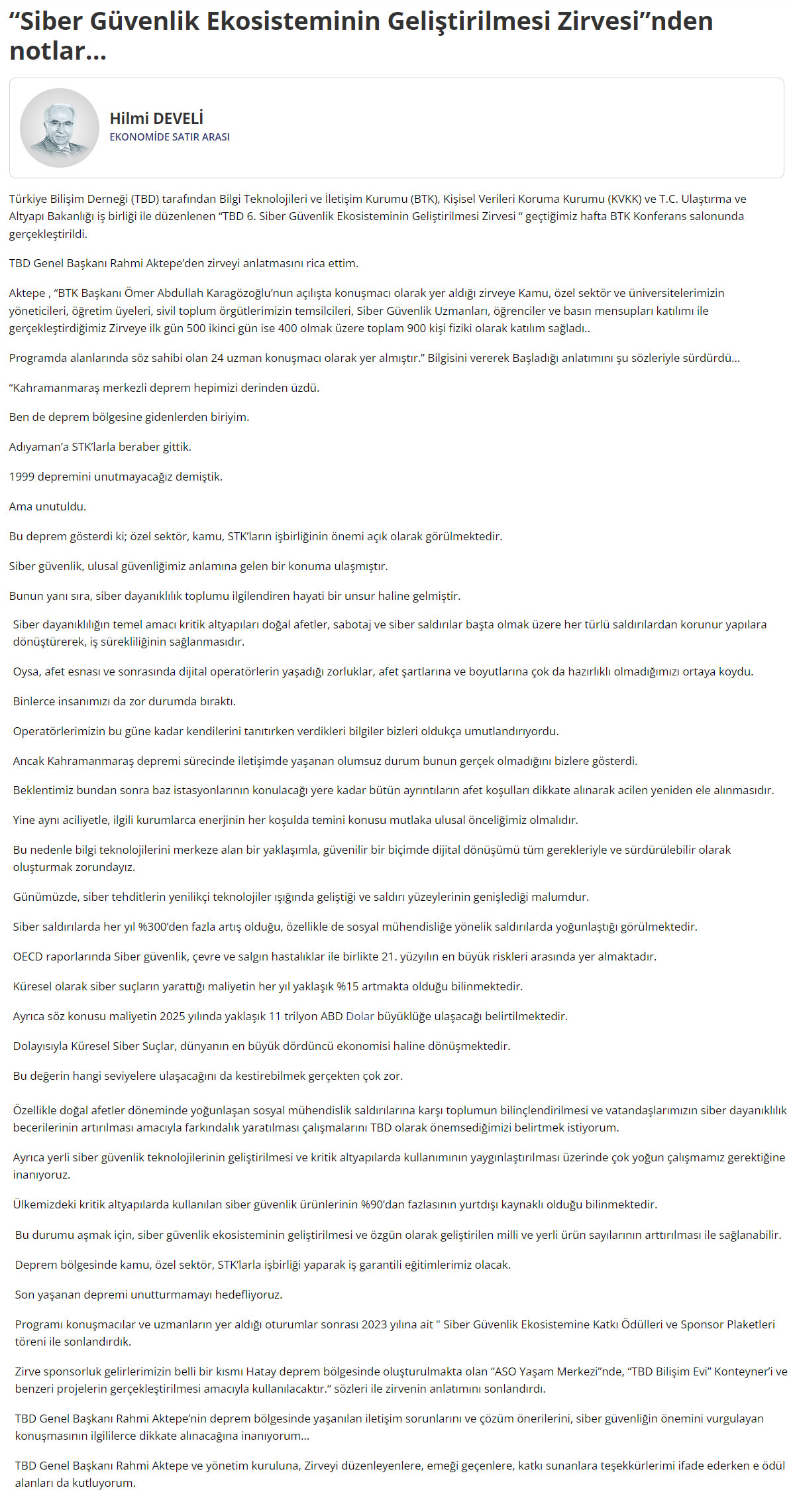 “Siber Güvenlik Ekosisteminin Geliştirilmesi Zirvesi”nden notlar… – EKONOMİM