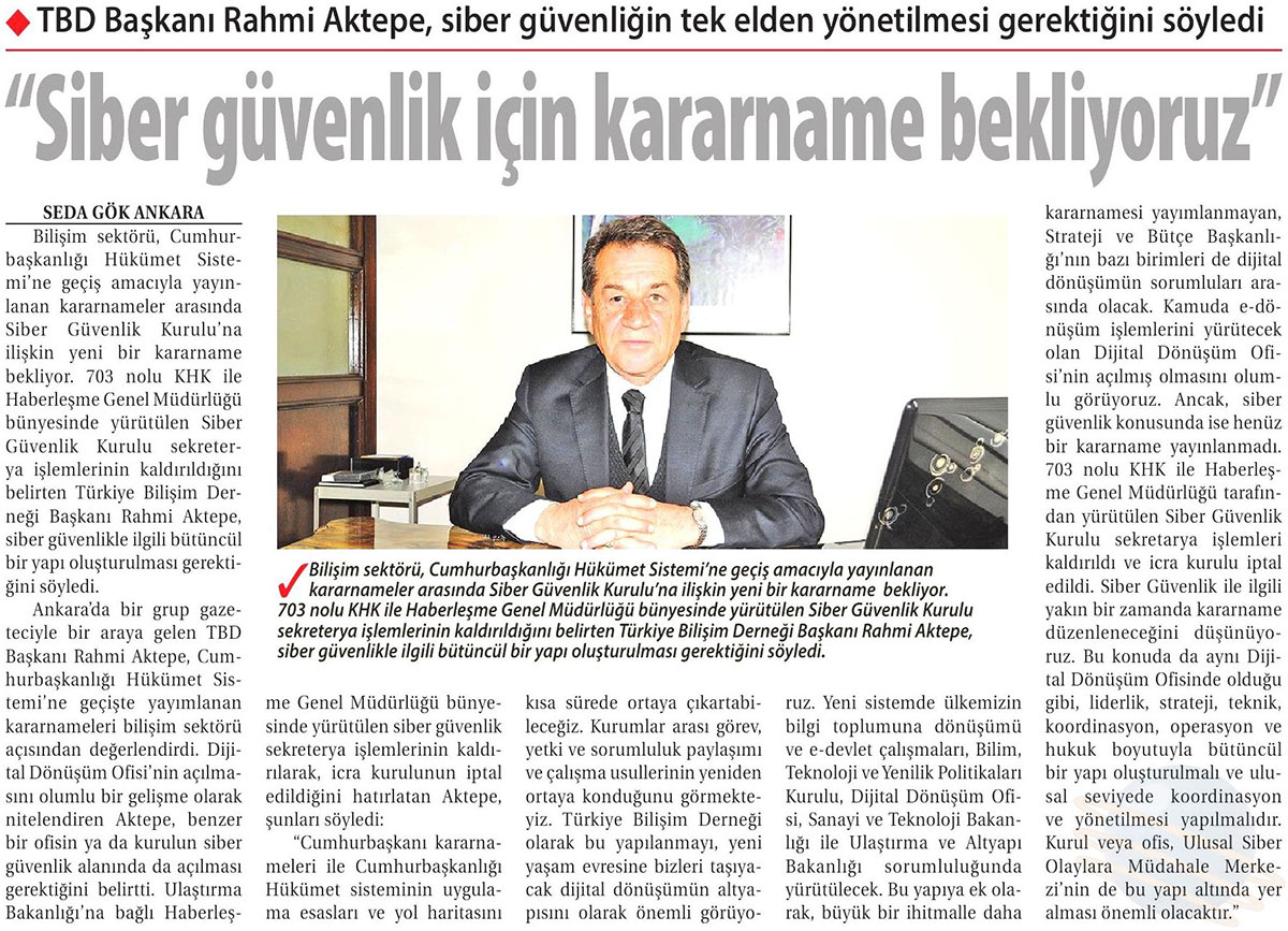 • Siber Güvenlik İçin Kararname Bekliyoruz – TİCARET GAZETESİ