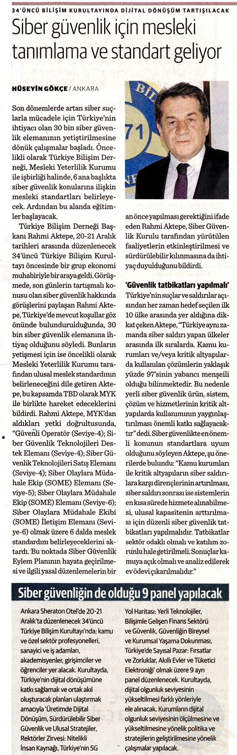 • Siber Güvenlik İçin Mesleki Tanımlama ve Standart Geliyor – DÜNYA GAZETESİ