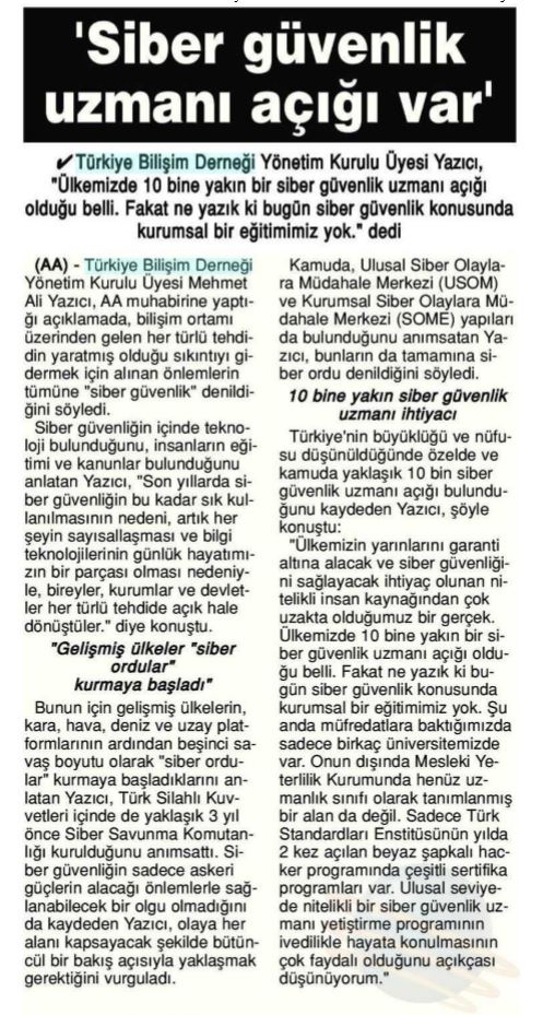 Önceki Türkiye'de 10 Bin Kişilik Siber Güvenlik Uzmanı Açığı Var - Yeni Söz Gazetesi