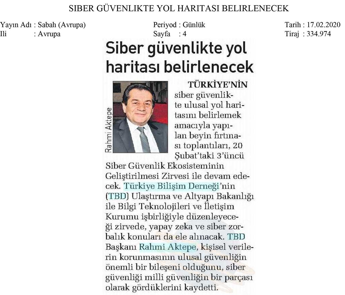 • Siber Güvenlikte Yol Haritası Belirlenecek – SABAH (AVRUPA)
