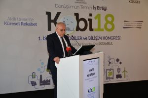 “Geleceğe bakan, gelecekte çare var mı diye düşünen katılımcıları selamlıyorum. Bakanlık olarak sanayi üretime yönelik desteklere ağırlık veriyoruz. KOBİ’ler çok sayıda varlık ifade ediyor ama ciroda o ölçüde güçlü durumları yok. İstihdamda güçlü yapıları görünmüyor. Bir tarafı önemli, bir tarafı önemsiz olarak görmüyoruz. KOSGEB üzerinden KOBİ’lere yapılan desteklerle stratejik ürünler ortaya çıkıyor. Yüksek katma değerli ürünlerin ortaya çıkmasını arzu ediyoruz. Dünya durmuyor. Küresel bir rekabet içindeyiz. Akıllı üretimde küresel rekabeti ön gören bir isimle bu kongrede yola çıkmışız. Talep edileni üretmek gibi yolara başvurmayı küresel rekabette öncü olmanın gereği olarak görüyoruz. Sanayi 4.0 için yapılan çalışmalara KOBİ’mizin ilgisinin olmadığını görüyoruz. Bakanlığımız bu anlamda Sanayi Devrimi’nin yönetilmesini sağlayacak bir platform oluşturdu. Hangi dallarda çalışılacağına dair çalışmalar yürütülüyor. İşletmelerin dijital dönüşüm sürecinde kamudan beklentilerini sorguluyoruz. Dünya güçlü bir rekabet içerisinde, biz de fabrikamızı adapte edelim demenin dışında farklı bir şey yapmalıyız. Bu yeni sistemde sadece tüketen değil üreten olalım diyoruz. KOBİ’ler aile şirketinin üzerine çıkmak istemiyorlar, bir dış göze itibar etmiyorlar. Çözümde daha çok aktif olmanın yollarını aramalıyız. Girişimciler para konusunda kaynak sorunu da yaşıyor. Girişimci stratejik ürün üretiyor ama parası olan bildiğim işe girerim diyerek destek olmuyor. Bu konularda zorluklar olduğunu görüyoruz. Bakanlığımız bunun için de çalışma yapıyor.”