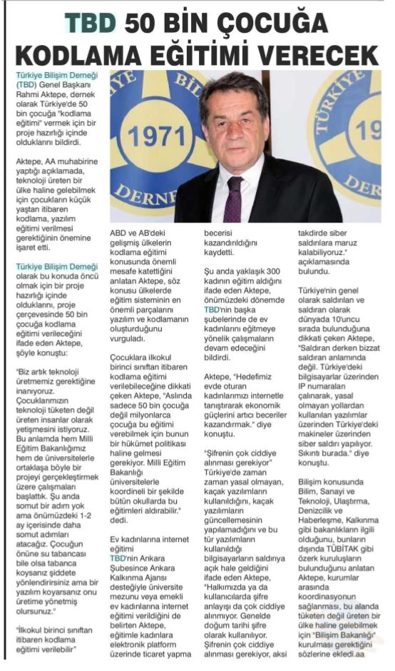 TBD 50 Bin Çocuğa Kodlama Eğitimi Verecek – Mardin Haber