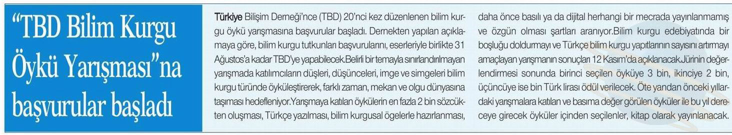 • TBD Bilimkurgu Öykü Yarışması