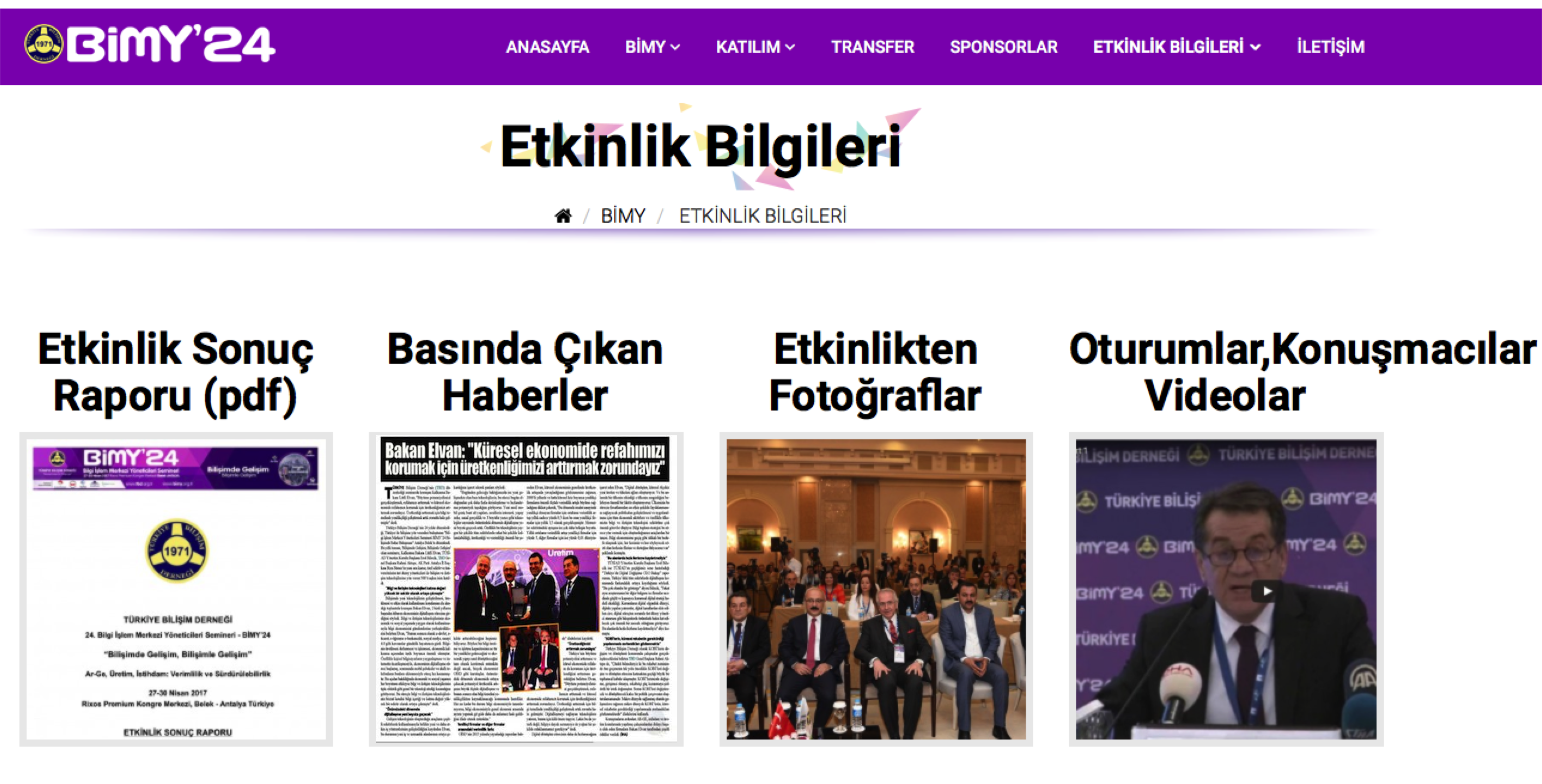 Türkiye Bilişim Derneği tarafından bu yıl 24.sü düzenlenen TBD Bilgi İşlem Merkezi Yöneticileri Semineri – TBD BİMY’24 , “Bilişimde Gelişim Bilişimle Gelişim” ana temasıyla 27-30 Nisan 2017 tarihlerinde Rixos Premium Kongre Merkezi, Belek Antalya’da gerçekleştirilmiştir.