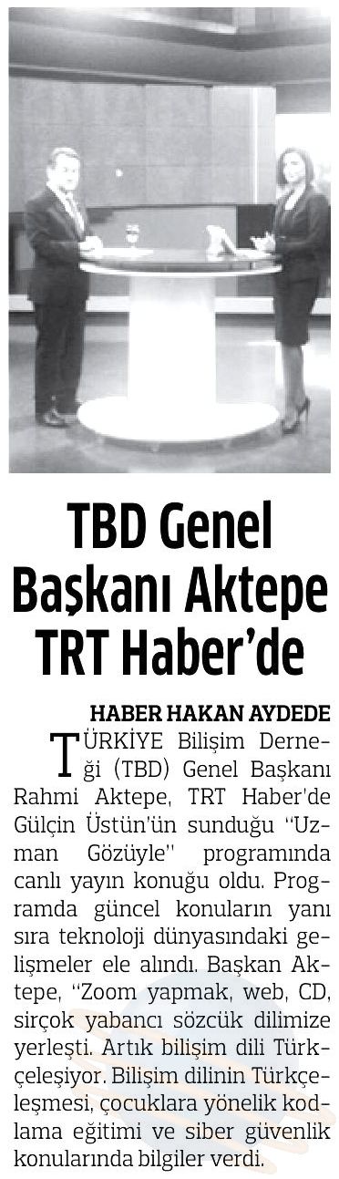 • TBD Genel Başkanı Aktepe TRT Haber’de – ANADOLU GAZETESİ