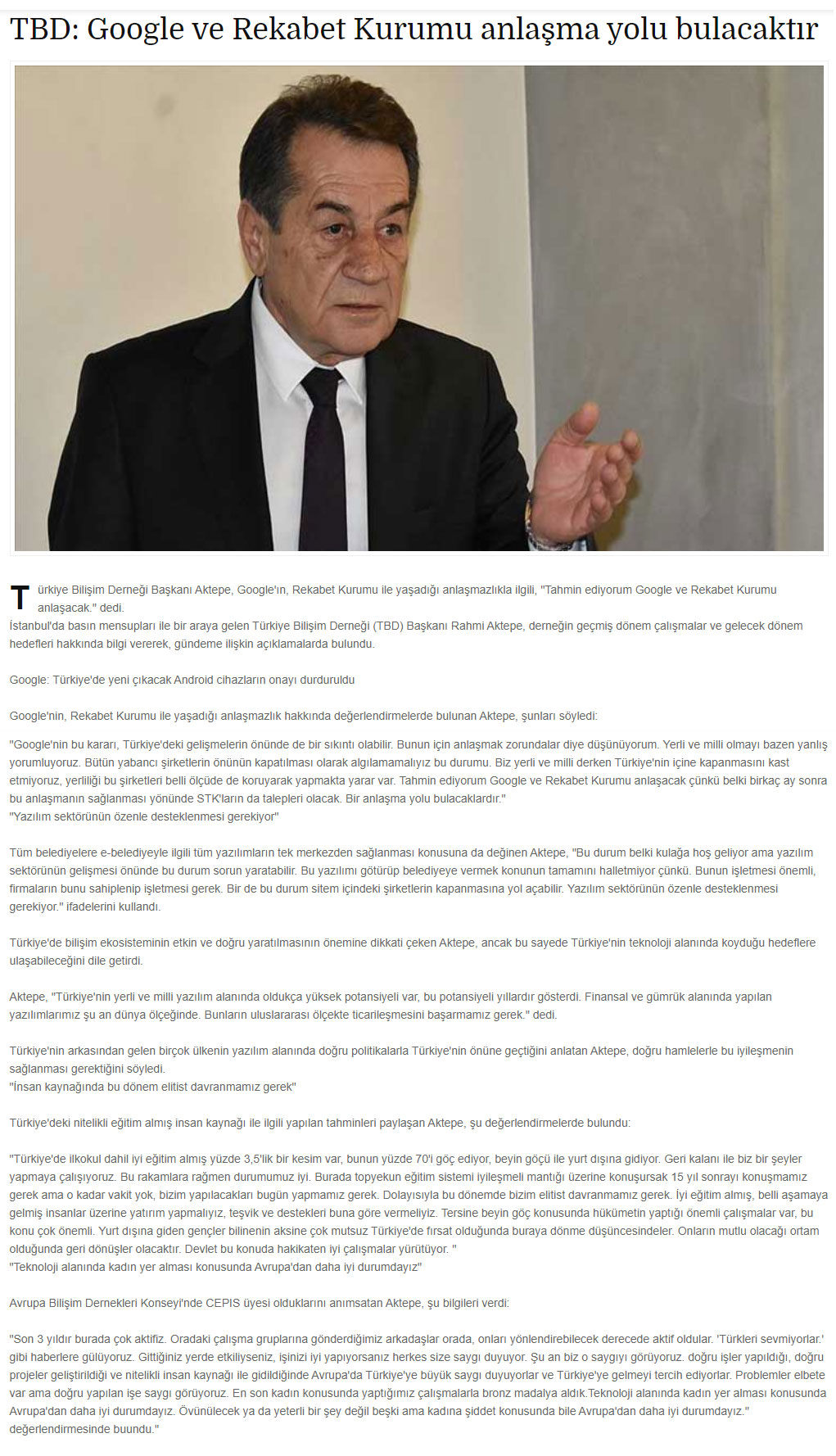 TBD: Google ve Rekabet Kurumu Anlaşma Yolu Bulacaktır – KANAL B