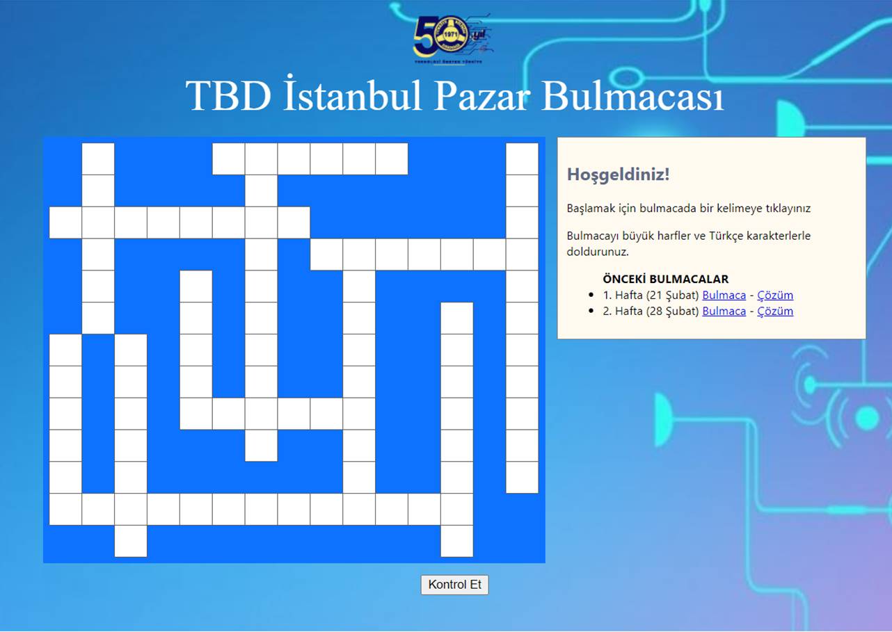 Sürpriz hediyelerimizin olduğu TBD İstanbul 7 Mart Pazar Bulmacamızı keyifle çözmenizi dileriz.