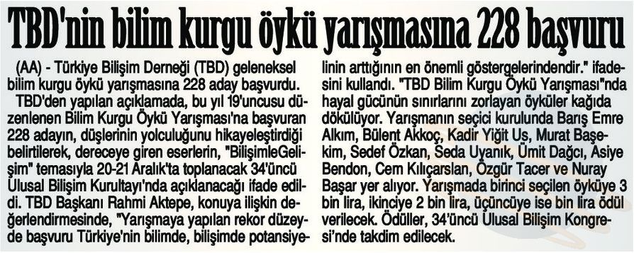 TBD’nin Bilim Kurgu Öykü Yarışmasına 228 Başvuru – SON SAAT GAZETESİ